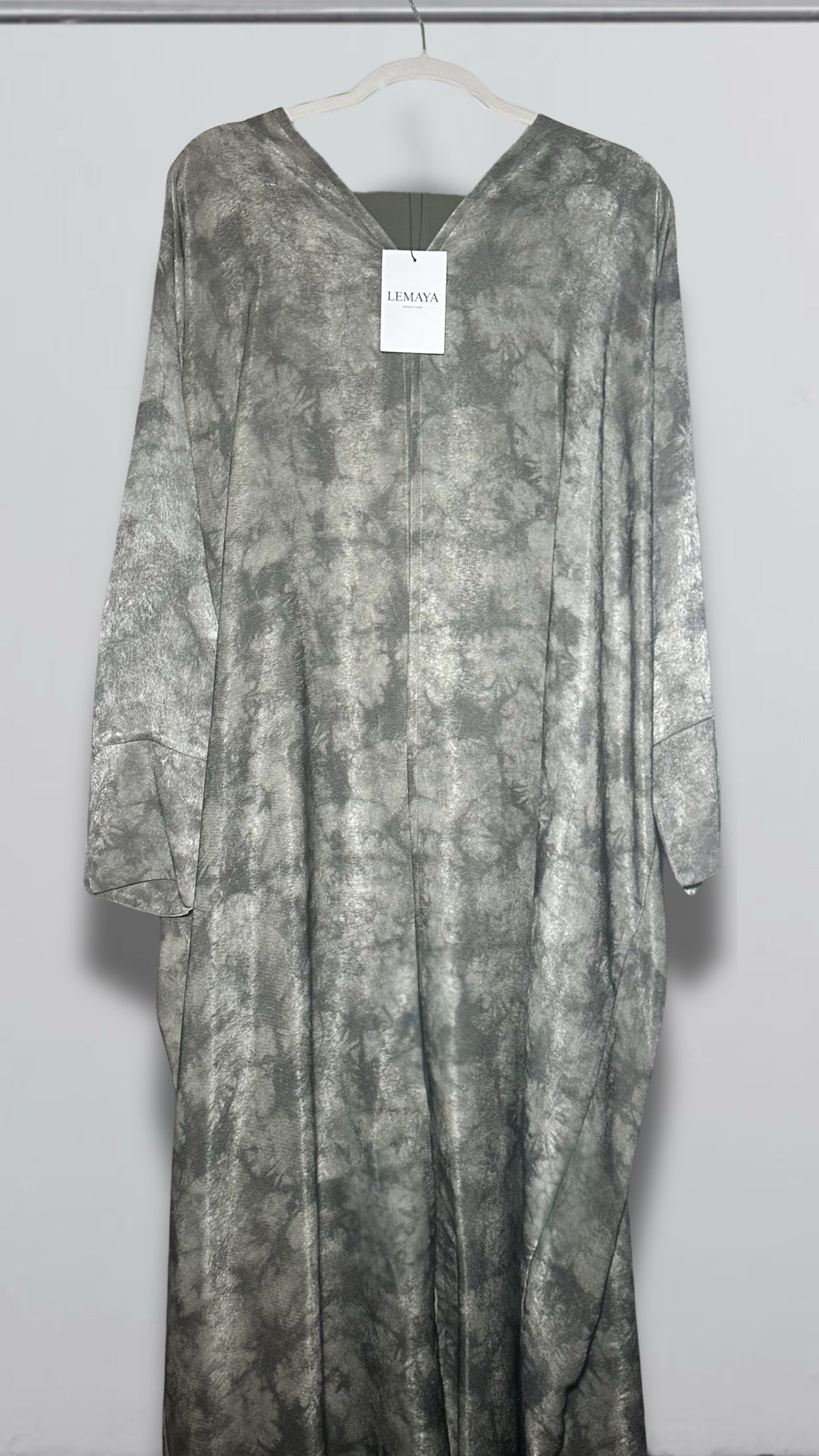 - Open abaya with single-button collar closure